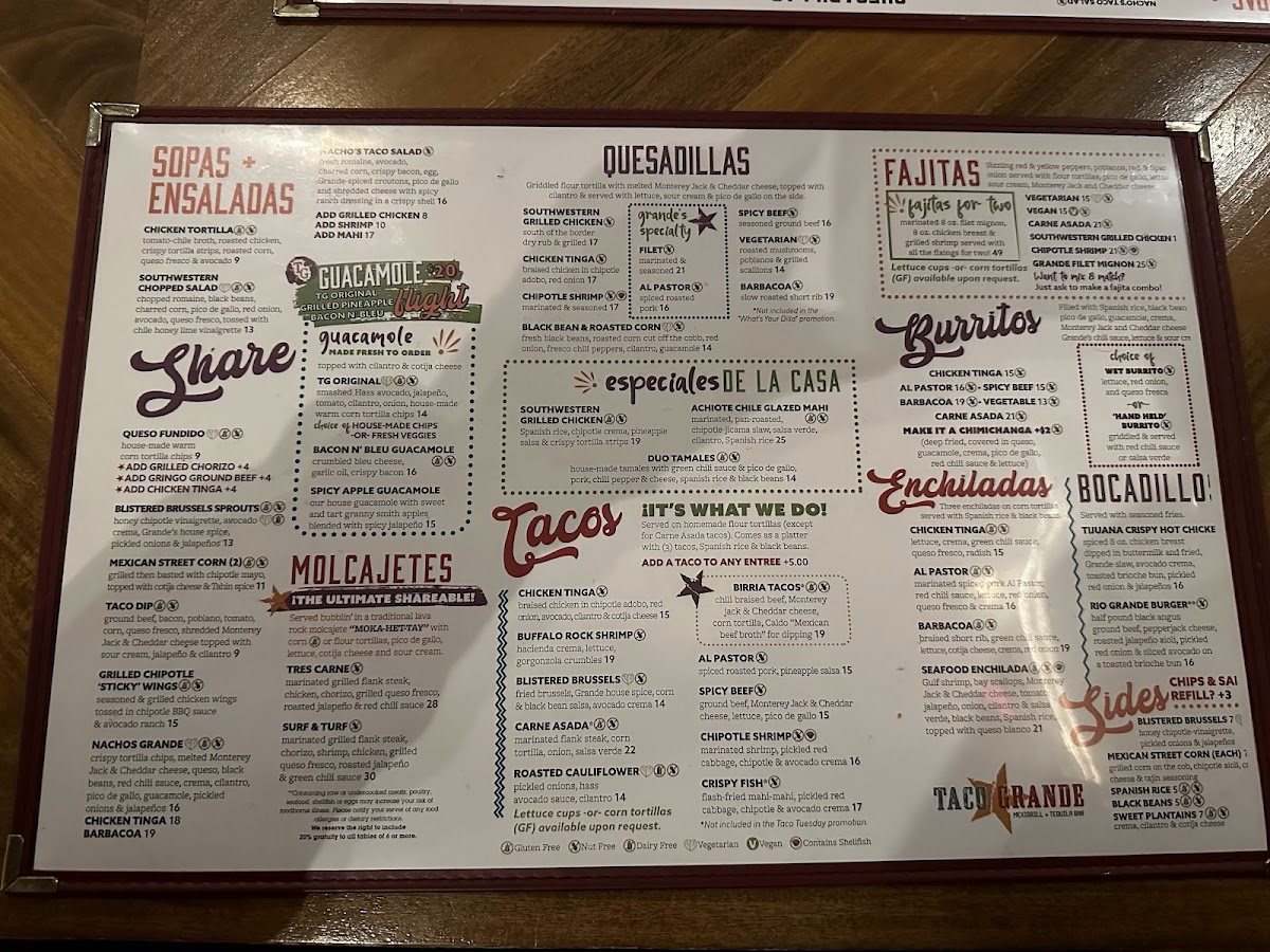 At Taco Grande, every meal brings a fiesta of flavors right to your table. With its cozy ambiance and vibrant dishes, this Wilmington favorite is the perfect spot to enjoy a wide range of tacos, burritos, and fresh salsas. Whether you’re craving a savory carnitas taco or a zesty shrimp burrito, the variety on the Taco Grande Menu promises something for everyone. The menu also features hearty sides like guacamole and chips, perfect for sharing, along with an assortment of flavorful sauces to complement every bite. From the first taste to the last, Taco Grande brings the bold and authentic tastes of Mexican cuisine to life in every dish. Come hungry and ready to indulge in a vibrant culinary experience.